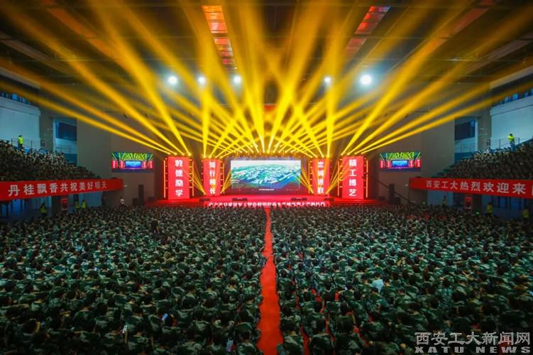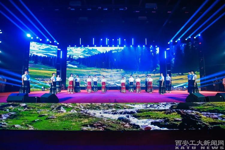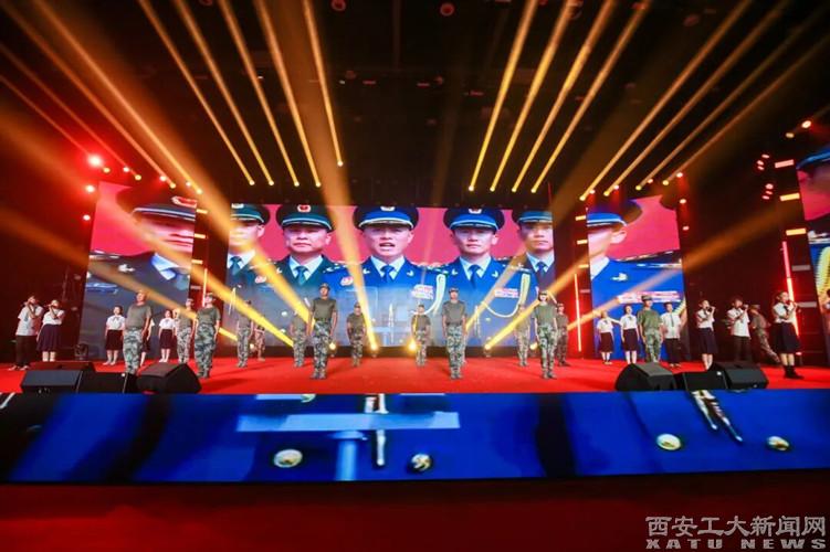 时代颂歌《青春旋律 强国梦想》由新生院、大学生艺术团、国旗护卫队与军事协会共同演出,铿锵步伐与青春歌声交织,展现了西安工大学子心系国防、强国有我的使命担当。