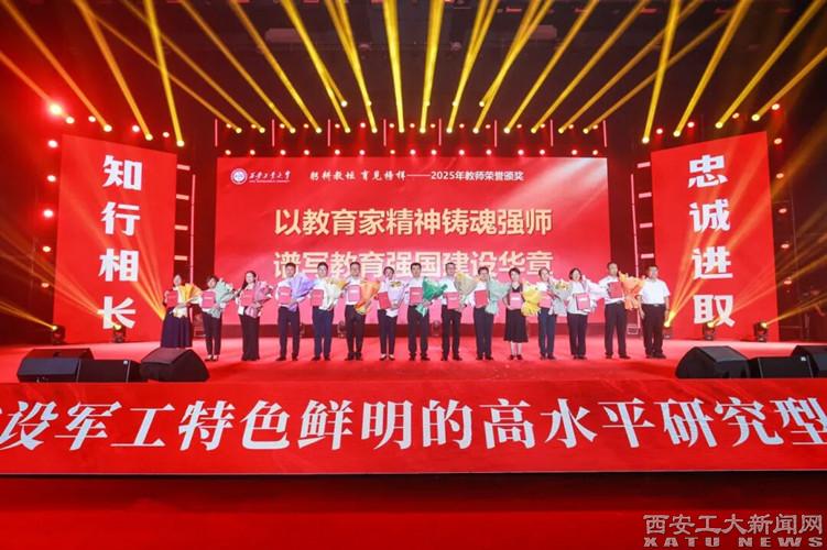 现场还举行了“躬耕教坛 遇见榜样”买球2025年教师荣誉颁奖仪式,对过去一年中涌现出的优秀教师和集体进行表彰。校党委书记侯成义为获得第五届全国高校教师教学创新大赛一等奖、2025年陕西省科学技术一等奖以及入选省级人才项目等校级以上荣誉的教师及团队颁发荣誉证书。校长姚尧为获得校级师德建设示范团队、师德标兵、优秀青年教师等荣誉的教师和团队颁发荣誉证书。