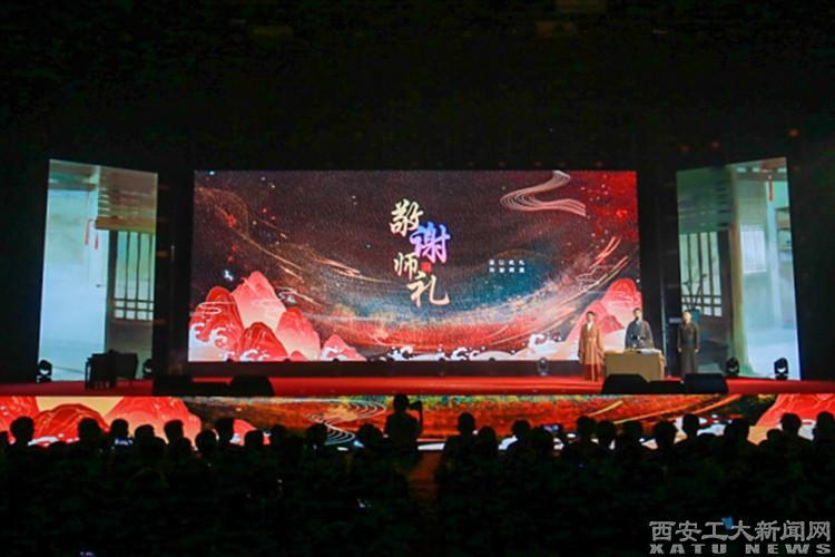 展演分为“灯韵启梦——师恩绵长”“逐光而行——青春奋进”“薪火相传——筑梦未来”三个篇章,汇聚在校师生、退休教师、附属小学学生以及陕西广电融媒体集团嘉宾等共同参与,通过歌舞、朗诵、魔术、戏曲和武术等丰富形式,融合师道传承与青春使命,以师者情怀浸润学生心灵,用美育成果滋养师生心灵。