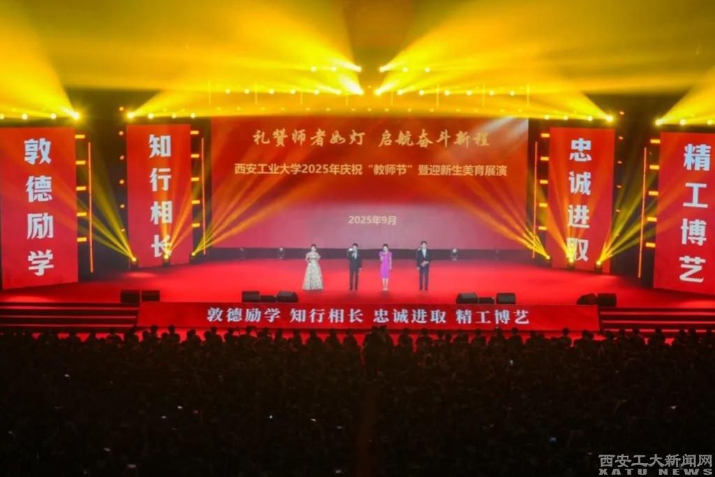 (本网讯)为庆祝2025年教师节,全面落实立德树人根本任务,大力弘扬教育家精神,展示学校美育成果,迎接2025级全体新生开启新的奋斗征程。9月10日晚,“礼赞师者如灯 启航奋斗新程”买球2025年庆祝教师节暨迎新生美育展演在未央校区大学生活动中心举行,为全体观演人员献上了一场师生共创的艺术和文化盛宴,也是全校师生同上的一堂弘扬教育家精神、科学家精神和营造尊师重教良好育人氛围的思政大课。