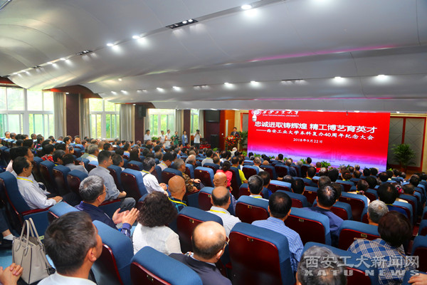 (本网讯)9月22日上午,西安工大举办以“忠诚进取铸辉煌,精工博艺育英才”为主题的本科复办四十周年纪念大会。校党委副书记于孟晨主持大会。校领导、师生代表、78级校友、相关职能部门和学院负责人参加。