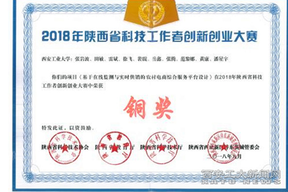(本网讯)919日,由陕西省科学技术协会、陕西省教育厅、陕西省科学技术厅、陕西省西咸新区沣东新城管理委员会联合主办的“2018 年陕西省科技工作者创新创业大赛”决赛落下帷幕,我校两项作品获奖。