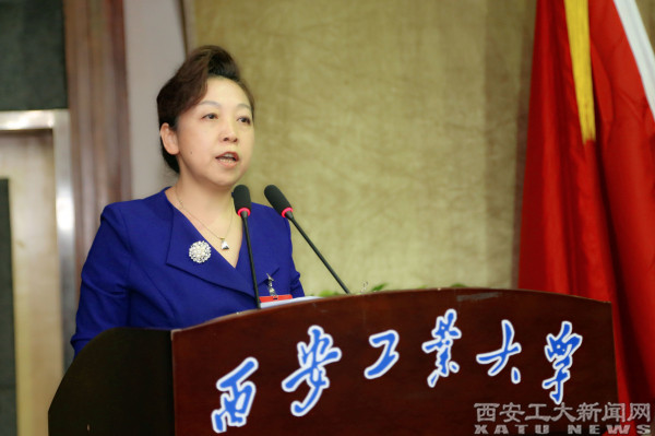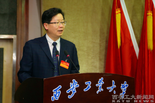 陕西省教科文卫体工会副主席陈鹏致辞。陈鹏指出,双代会是学校发展中的大事,是全校教职工政治生活中的喜事。近几年来,买球工会在民主管理、民主监督、维护教职工合法权益、丰富教职工文化生活等方面成绩显著,希望学校党委一如既往地支持工会工作。对于今后工会工作,陈鹏提出了意见和建议。