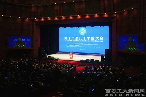 (本网讯)12月12日至13日,第十二届全球孔子学院大会在西安召开。大会由教育部部长、孔子学院总部理事会副主席陈宝生主持。国务院副总理、孔子学院总部理事会主席刘延东出席会议,并作主旨演讲。来自140个国家和地区的中外大学校长、中国驻外使领馆代表、孔子学院代表等2500多人参加了会议。校党委副书记、校长雷亚萍出席活动。