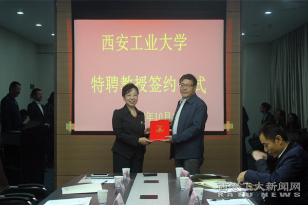 (本网讯)10月13日,学校举行中国兵器工业集团第五二研究所总工程师王大森研究员受聘西安工大特聘教授聘任仪式。校党委书记刘卫国、校长雷亚萍、副校长刘卜出席仪式。