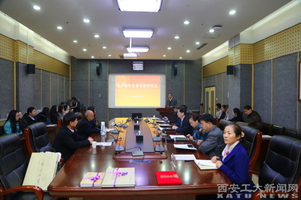 (本网讯)1月11日,省委组织部原部务委员、书法家余少君捐书助学仪式在学校未央校区举行,省委组织部宣教处处长张清、省委组织部老干部处处长陈中立一同莅临我校。校党委书记刘卫国,校党委副书记、校长雷亚萍出席仪式。会议由副校长刘建勋主持。