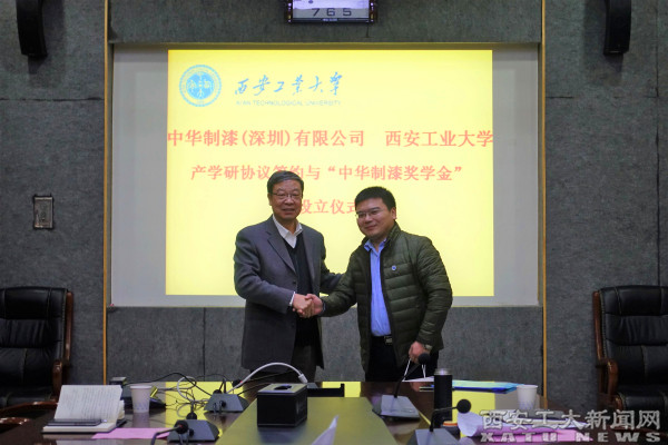 (本网讯)110日,中华制漆(深圳)有限公司与我校产学研合作协议签约仪式及“中华制漆奖学金”设立仪式在未央校区图书馆第二会议室举行。副校长刘建勋出席。