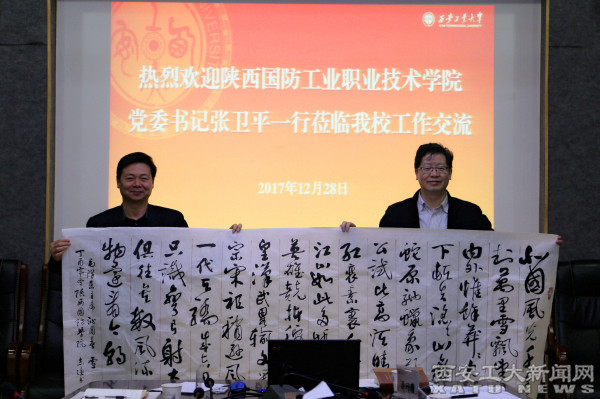 期间,张卫平代表陕西国防工业职业技术学院向我校赠送了书法作品。