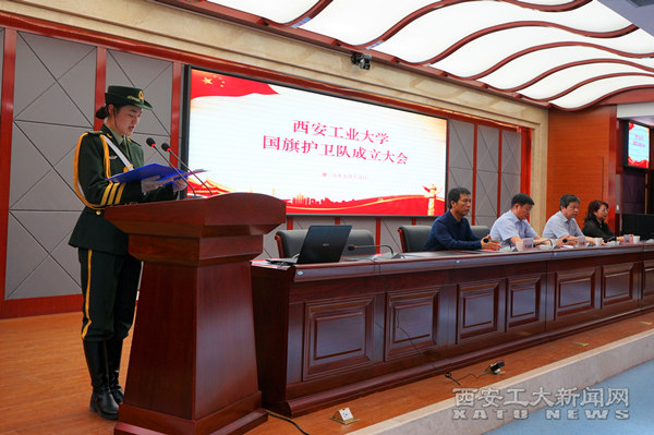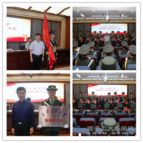 (本网讯)5月15日,买球国旗护卫队成立大会在学术报告厅举行。买球党委副书记吴介军、王军周,副校长刘发林,总会计师段小存出席。