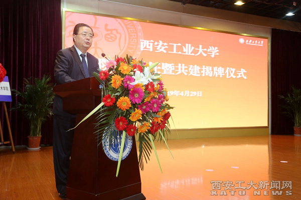中国兵器工业集团西北兵工局党委副书记、纪委书记李俊策指出,兵器科学与技术学院、西北兵工科教创新中心的共建,突出了学校的办学特色,为学校“双一流”建设的发展提供了有力支撑,希望新成立的兵器科学与技术学院和西北兵工科教创新中心能创新教学科研模式、弘扬人民兵工精神、探索产学研合作新模式、建立人才培养优选机制,共建双方能统筹资源,发挥优势,共同促进西北兵工事业的发展。