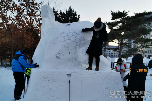 (本网讯)1月4日至7日,第十一届国际大学生雪雕大赛在哈尔滨工程大学圆满落幕。本次大赛以“燃青春跟随时代·铸冰雪逐梦未来”为主题,共有来自中国、英国、泰国、俄罗斯、丹麦、香港、台湾等7个国家和地区的95所高校的183件作品报名参赛,最终共有55支代表队入围决赛。经过4天的激烈角逐,由我校艺术与传媒学院环境设计系王强老师指导,智佳倩、王敏涛、李星澈、马昊堃等同学创作的雪雕作品《鱼跃龙门》成功入围决赛,最终荣获三等奖。