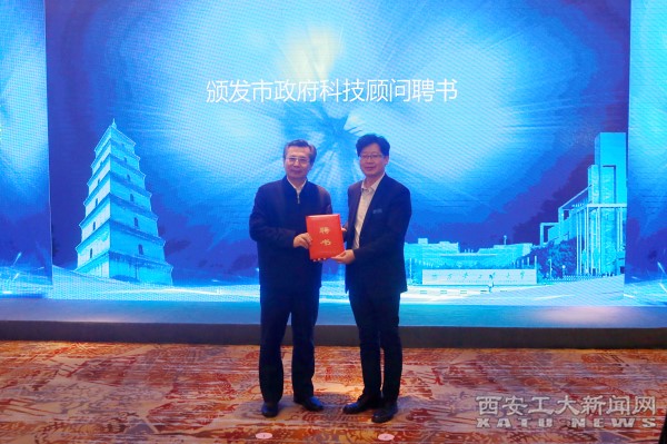 王永康为刘卫国颁发西安市政府科技顾问聘书。