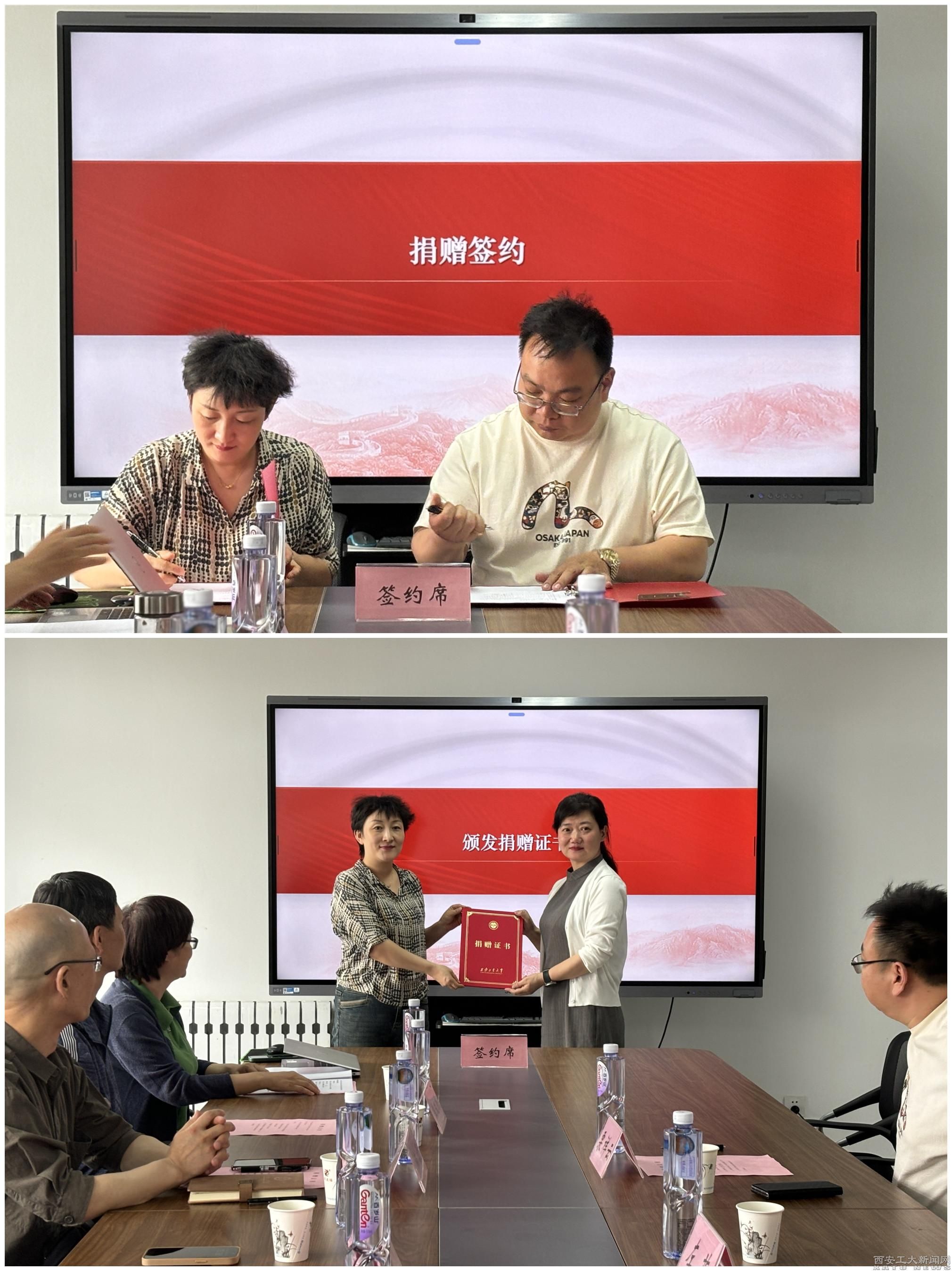 仪式上,梁华平向与会人员介绍了学院的发展历程和近年来取得的成果。随后,马院2018级校友、捐赠者之一栗祥云分享了自己的个人发展、成长经历以及设立奖学金的初衷和愿景。雁塔区政协委员、工商联副主席左茹作为此次捐赠人,讲述了她与高校的不解之缘,并表示愿为学院的发展尽自己最大贡献。周黎萍与栗祥云校友签订了捐赠协议,并为左茹颁发了捐赠证书。