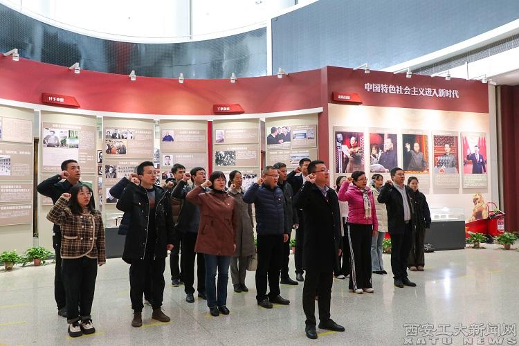 参观最后,在鲜红的党旗下,机关党委书记姜冰清带领全体党员重温入党誓词:“我志愿加入中国共产党,拥护党的纲领,遵守党的章程,履行党员义务……”用坚定的声音表达着对党绝对忠诚的决心。