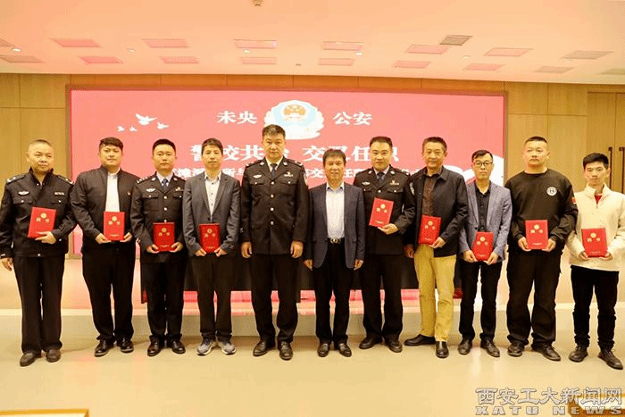 (本网讯)4月21日上午,西安市公安局未央分局在我校图书馆报告厅举办了草滩派出所与北郊3所高校“警校共治,交叉任职”聘任仪式。副校长刘发林、公安未央分局副局长崔同利、草滩派出所所长许朝睿,陕西科技大学、西安医学院和我校学工、保卫部门负责人,草滩派出所部分民警和我学校100余名学生参加了聘任仪式。仪式由草滩派出所教导员李江涛主持。