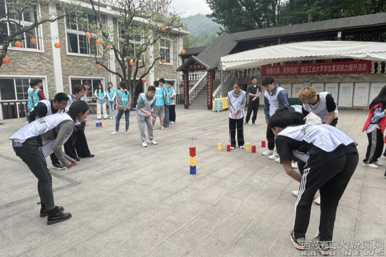 来到祥峪绿园山庄拓展训练基地,学生们共分为三组,在教练的指导下通过开营仪式、纵横天下、达芬奇密码、合力筑塔、齐心传球等富含趣味性的拓展互动项目进行比拼。活动中,大家从手忙脚乱到沉稳有序,从缺乏协作到配合默契,在“体验式学习”中增强责任感,在交流与信任中实现自我突破。