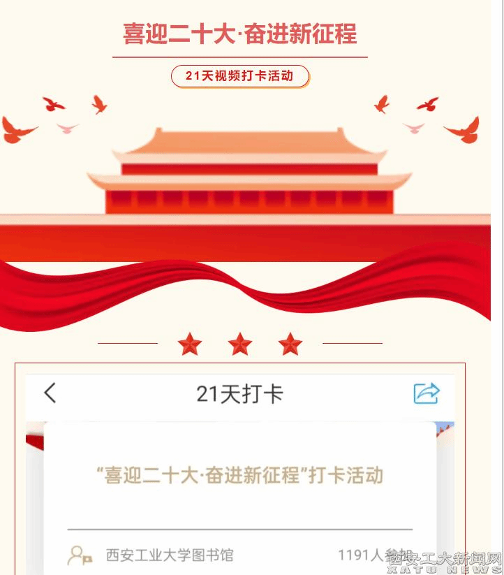 (本网讯)近日,买球图书馆和图书信息党总支在全校组织开展了“喜迎二十大 奋进新征程”21天视频学习打卡活动。此次活动得到全校师生和图信总支全体党员的欢迎和踊跃参加。据统计,总参加人数达1191人,坚持打卡21天的师生达到80%。