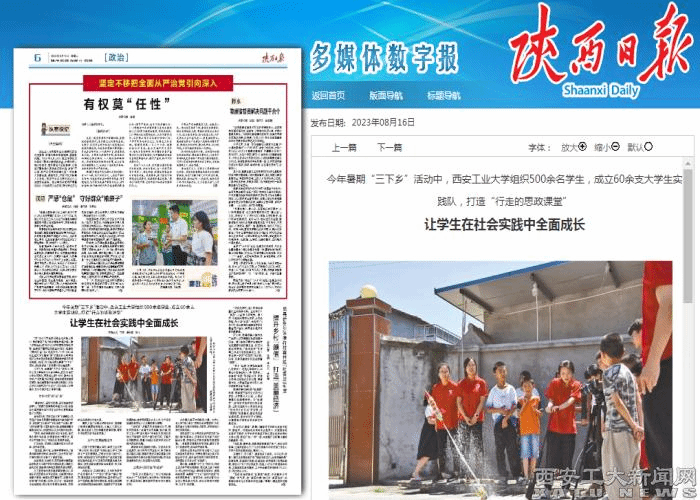 学校形成了鲜明的“思想政治引领+专业知识实践+素质能力提升”的社会实践特色,受到人民网、光明网、中国青年网、中国共青团杂志、陕西日报等近百家媒体的宣传报道500多篇,取得了良好的社会声誉和效果。