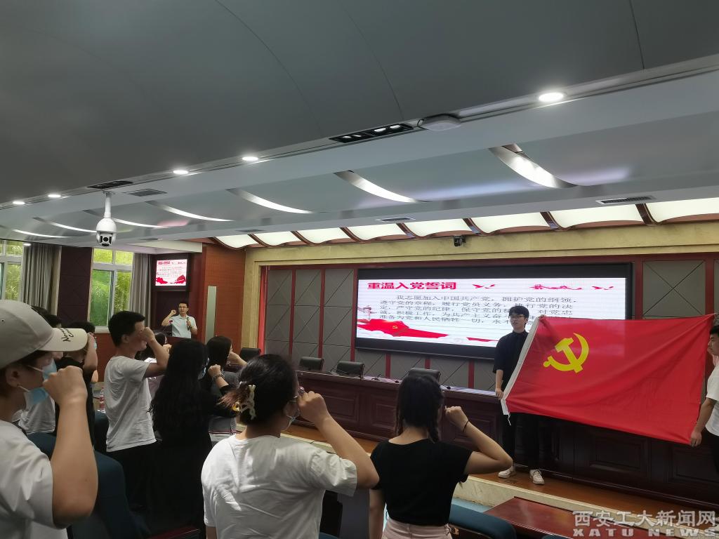 靳永军组织全体毕业生重温入党誓词,回顾入党初心,强化了党员身份意识。