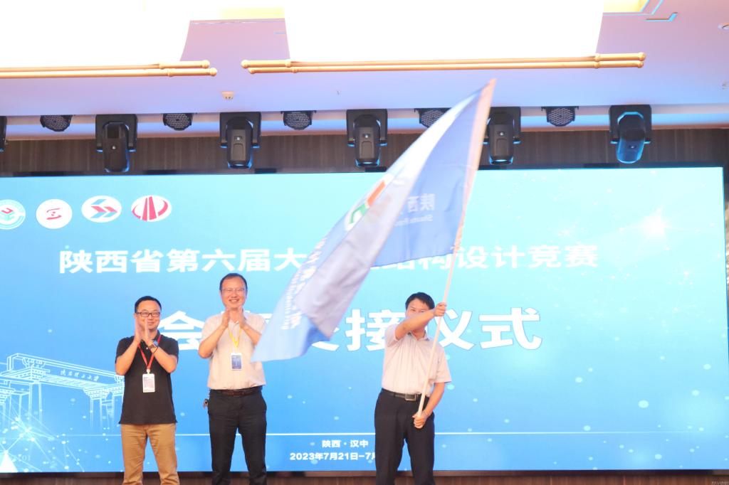 闭幕式上,我校作为下一届省赛的主办方,建筑工程学院院长黄华从陕西省大学生结构设计竞赛组委会手中接过会旗并发言,诚挚邀请省内各兄弟院校明年相聚买球,并祝愿参赛师生勇攀高峰、再创辉煌。