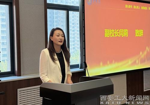 闫莉致辞,她谈到要坚持OBE理念,以学论教反向设计,数智赋能教学,促进学生个性学习。她对新生院成立以来在课程改革、学生管理、学科竞赛等方面取得的成绩表示肯定。同时,对老师们提出几点建议,一是立德树人,为厚基础铺好路;二是主动学习,实现自我提升发展;三是交叉协同,为宽口径教育搭好平台。