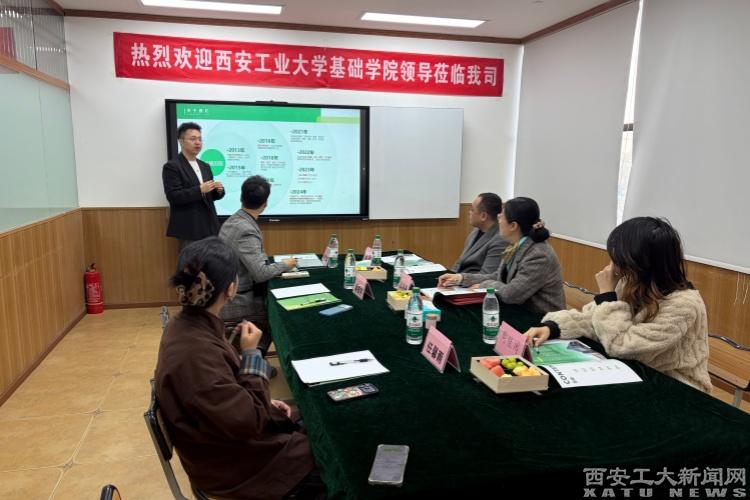 张艳霞代表基础学院向两家企业详细介绍了学校的办学特色、学科优势以及学院的专业设置、人才培养模式、毕业生就业情况。她表示,基础学院始终致力于培养适应社会发展需求的高素质人才,此次赴企业交流,为进一步加强与企业的沟通对接,探索校企合作的新领域、新方式,希望未来能与两家企业在人才培养、就业指导、实习就业、产学研合作等方面建立深度合作关系,实现校企资源共享、优势互补、互利共赢。