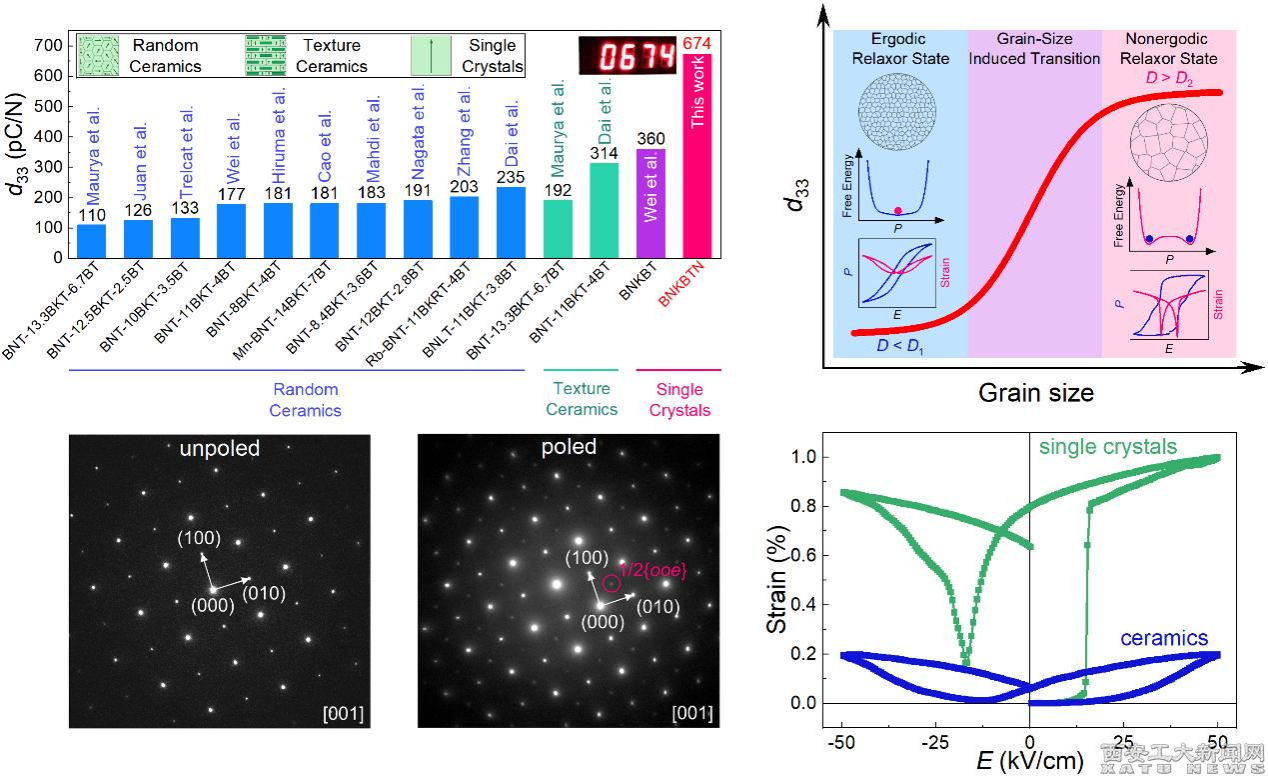(本网讯)近日,我校魏永星副教授研究团队硕士研究生关畅澎在国际顶级学术期刊《Acta Materialia》(IF=9.3)上发表了题为“High piezoelectric performance and ergodic-nonergodic relaxor transition induced by single crystallization in Bi0.5Na0.5TiO3-based materials”的学术论文。买球为第一通讯单位,魏永星为通讯作者,西安交通大学靳立教授为共同通讯作者。